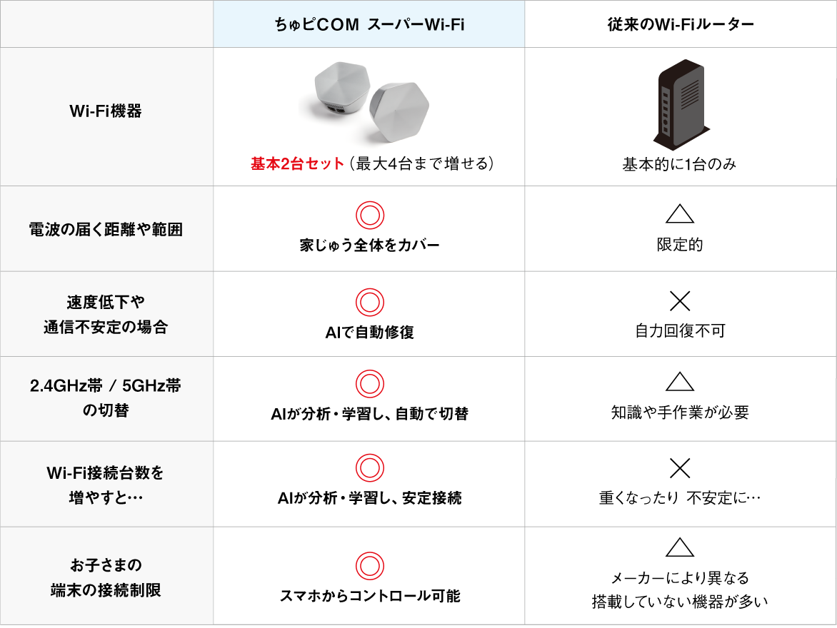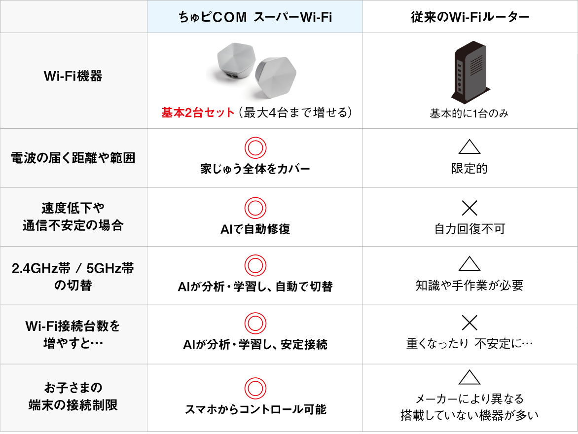 従来のWi-Fiとは一味違う、ちゅピCOM スーパーWi-Fi。高速で安定したWi-Fi環境を、ぜひご自宅で!