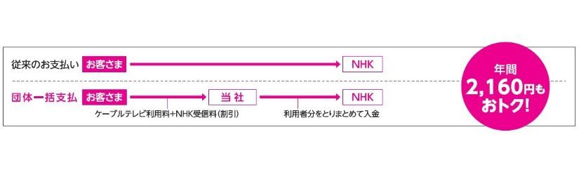 ちゅピCOMでNHKの衛星放送をご覧の皆さまのための割引制度で、ちゅピCOMが受信料を取りまとめてNHKに支払うことで、各世帯の受信料が割引になります。