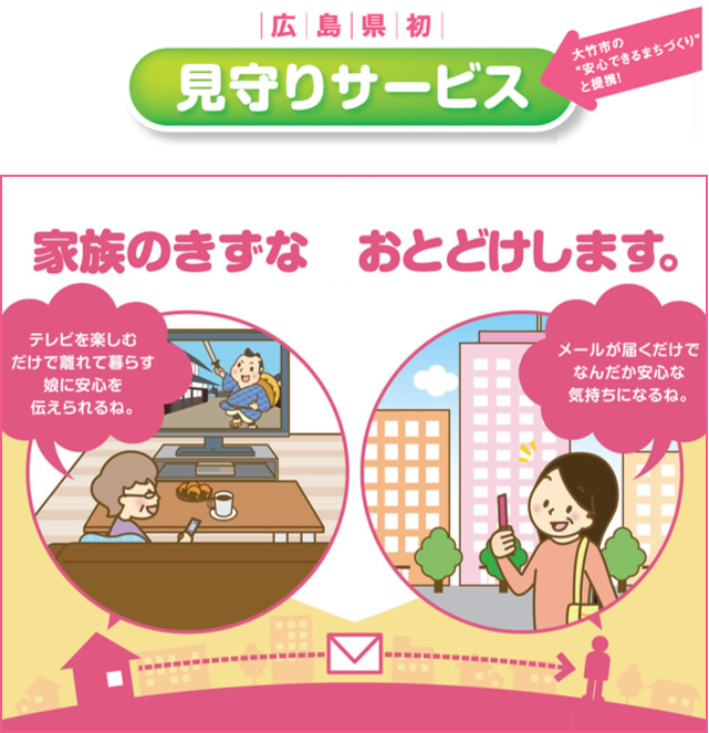 見守りサービスとは、大竹市が市内一円に敷設した光ケーブルを活用した事業です。